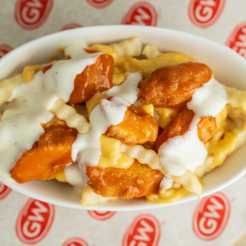 Chicken tenders in medium sauce, melted cheese sauce, & ranch